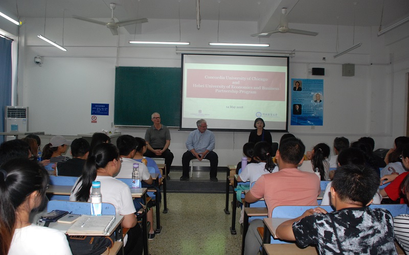 5月14日下午,国际交流与合作处与商学院联合举办“中美教育及文化差异讲座”。KY开元与芝加哥康考迪亚大学中外合作办学项目外教派克·周、斯科特及贝勒罗斯三位教授主讲,国际教育学院、中东欧国际商务研修学院、商学院教师及商学院学生共100余人参加。