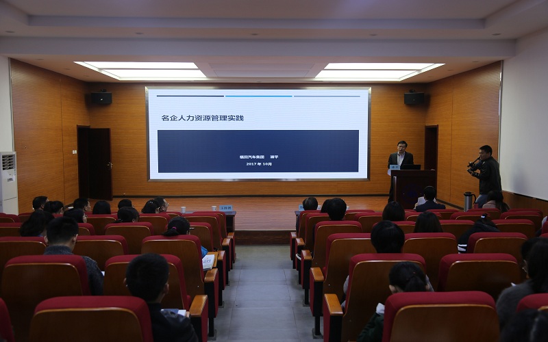 10月22日上午,北汽福田汽车股份有限公司总经理助理、人力资源部总经理潘平应工商管理学院邀请,在工商论道大讲堂作题为“名企人力资源管理实践”的讲座。讲座由工商管理学院副院长王胜洲主持,学院部分教师、MBA及学术研究生80余人参加。