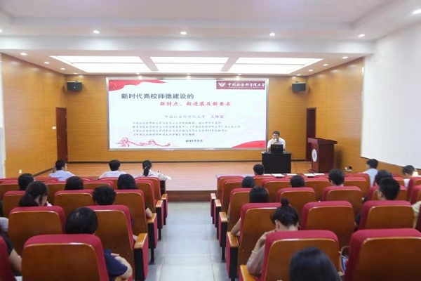 9月2日下午,工商管理学院在学院报告厅举办课程思政教学活动。中国社会科学院大学马克思主义学院副教授、硕士研究生导师王维国应邀作“新时代高校师德建设的新特点、新进展及新要求”的主题报告。学院党委书记赵国峰、院长李桂荣及学院全体教职工参加。
