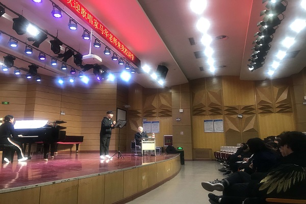 马华教授用通俗易懂的语言解释了意大利传统的美声观念,介绍了人体发声的原理,以及如何运用科学正确的方法歌唱。随后,他对艺术学院的八名学生进行现场声乐指导,根据学生的演唱进行一对一教学。从演唱的节奏到感情细节的把握,马老师都给予精准细致的点评及演示。生动活泼的教学方式、朴实的语言,轻松愉悦的课堂氛围让学子们感受到马华教授精湛的演唱水平和深厚的艺术造诣。