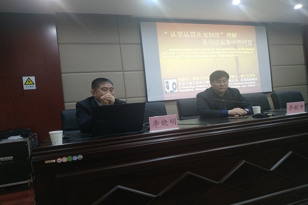 12月15日,法学院邀请苏州大学王健法学院李晓明教授作题为“认罪认罚‘从宽’制度的理解及执行中存在的问题”的学术报告,法学院教师李献中主持,教师刘红霞以及60余名研究生参加。