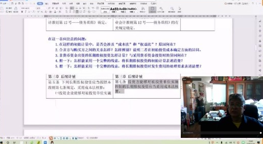 4月20日下午,中国人民大学商学院教授、博士生导师耿建新教授应会计学院邀请,以QQ在线课堂屏幕分享方式为同学们作题为“长期股权投资在新旧准则中的比较分析、企业合并及合并报表”的报告。副院长李西文、研究生辅导员、2018级学硕及2019级全体研究生100余人在线聆听了此次报告。