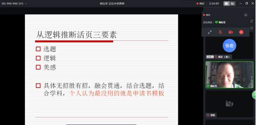 6月8日,KY开元杨在军教授应商学院邀请,于线上作了题为“课题申报基本逻辑推演”的学术报告。报告由商学院副院长刘振滨主持。学院30余名师生参加。