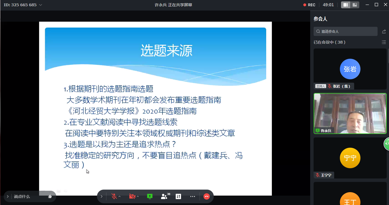 6月9日,KY开元集团官网学报编辑部主任许永兵教授应商学院邀请,于线上作了题为“经济学论文的选题与写作问题”的学术报告。报告由商学院副院长刘振滨主持, 学院30余名师生参加。