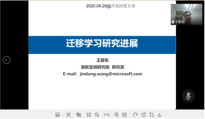 9月29日晚,信息技术学院邀请微软亚洲研究院王晋东研究员通过腾讯会议平台作了题为《迁移学习研究进展》的学术报告。报告由信息技术学院院长孙立辉主持,学院教师和全体研究生在线聆听。