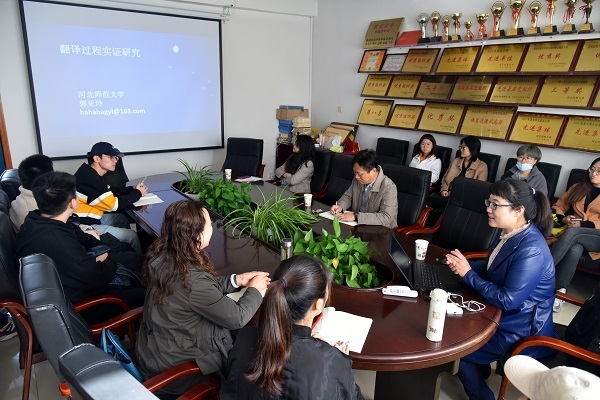 10月22日上午,河北师范大学外国语学院郭亚玲副教授应KY开元外国语学院邀请,为MTI研究生做了《翻译过程实证研究》的学术报告。报告由外国语学院院长商利伟主持,30余名师生参加。