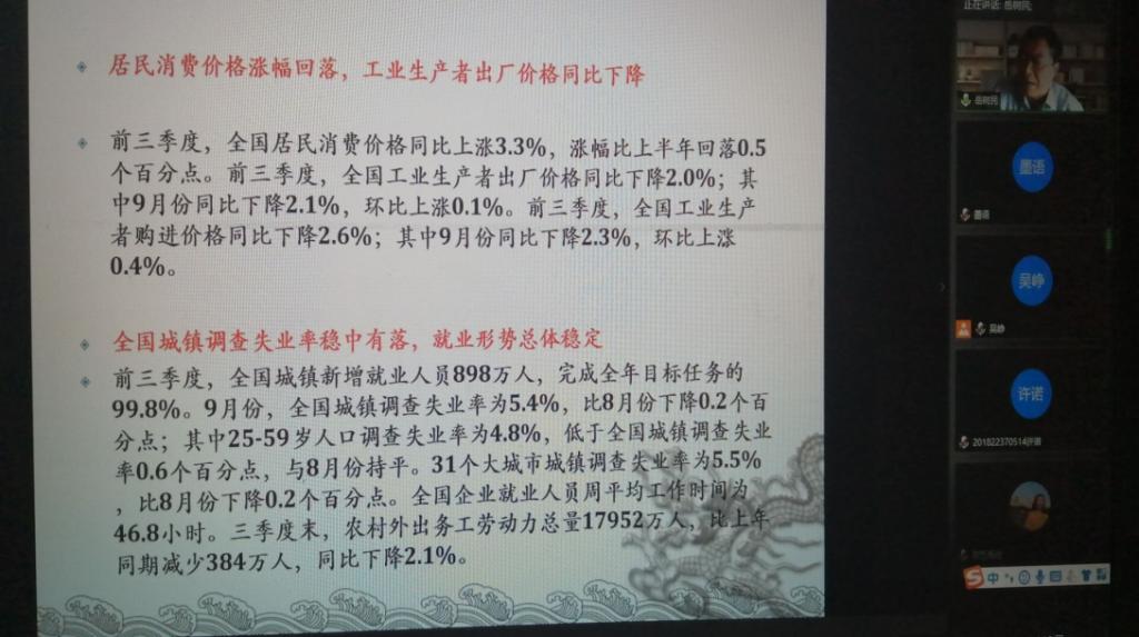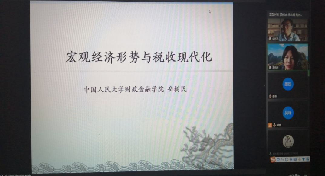 10月19日下午,中国人民大学博士生导师岳树民教授应KY开元财政税务学院邀请,通过腾讯会议平台为同学们作题为“当前宏观经济形势与税收政策”的主题报告。本次报告由财税学院院长王晓洁主持,副院长仇晓洁做点评,财政税务学院部分师生200余人在线聆听了本次报告。