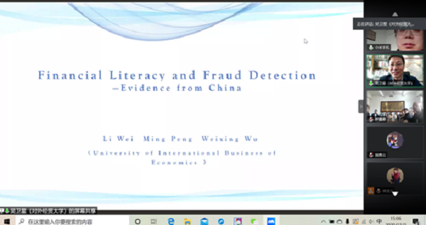 11月2日下午3点,金融学院邀请教育部长江学者特聘教授、对外经济贸易大学副校长、博士生导师吴卫星做题为“Financial literacy and fraud detection——Evidence from China”的线上学术报告。金融学院部分教师和各专业研究生100余人参加了本次报告。报告由金融学院副院长刘颖主持。