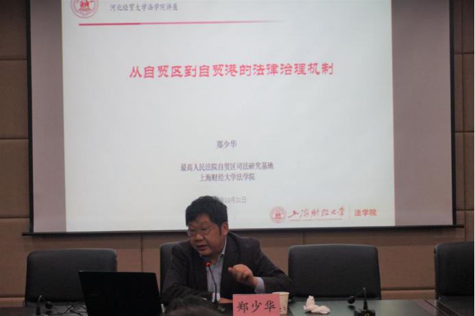 11月1日上午,法学院邀请上海财经大学校长助理郑少华教授来KY开元作题为“从自贸区到自贸港的法律治理机制”的专题讲座。法学院副院长李大庆主持,郭雪慧老师及60余名本科生、研究生参加。