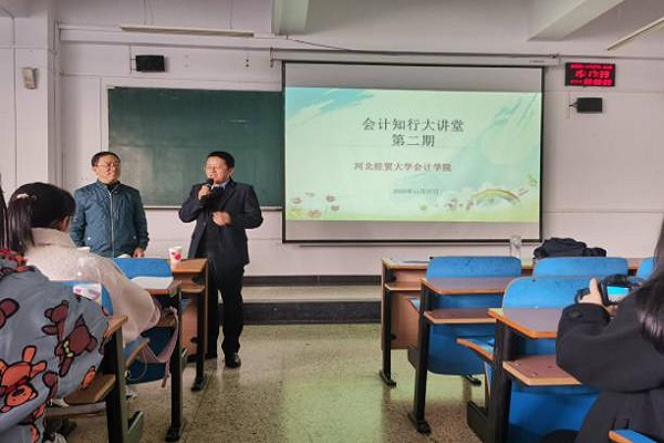11月27日下午,河钢集团投资控股有限公司总经理王陇刚,在北三教C310作了题为“河钢集团的数字化转型实践”的报告,会计学院院长袁振兴主持,部分教师和研究生、“数字财会”实验班学生近200人参加了本次报告。