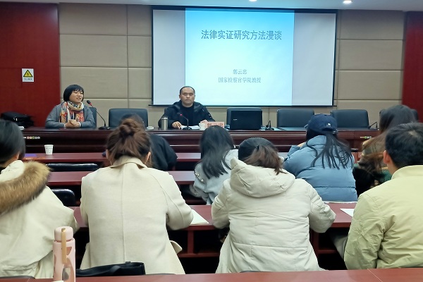 12月4日,法学院邀请国家检察官学院郭云忠教授作题为“法律实证研究方法漫谈”的学术报告。法学院教授张亚军主持,学院40余名研究生参加。