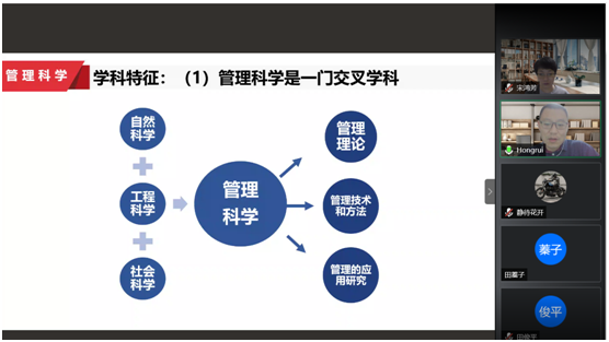 12月4日,应管理科学与工程学院邀请,清华大学经济管理学院博士后褚宏睿教授作题为“管理科学与工程学科发展与最新趋势研究”学术讲座。讲座由宋鸿芳博士主持,学院教师以及研究生在线聆听了讲座。