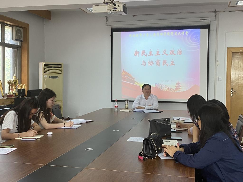 余育国教授以新民主主义时期-建国初期社会主义建设时期-改革开放时期为主线,从历史发展的角度回顾了新民主主义政治与协商民主的先进理念在各个时期起到的重要作用,论述了社会主义协商民主的特有形式和独特优势。余教授还详细讲解了协商民主在当代的价值:即有利于发展中华优秀传统政治文化,有利于践行中国共产党的初心和使命,有利于推进社会主义民主政治的发展,有利于推进全球治理体制的变革。
