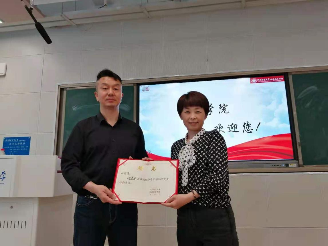会上,仇晓洁首先代表学院向刘建龙总经理颁发了社会导师聘书,聘其担任财政税务学院税务专硕社会导师。