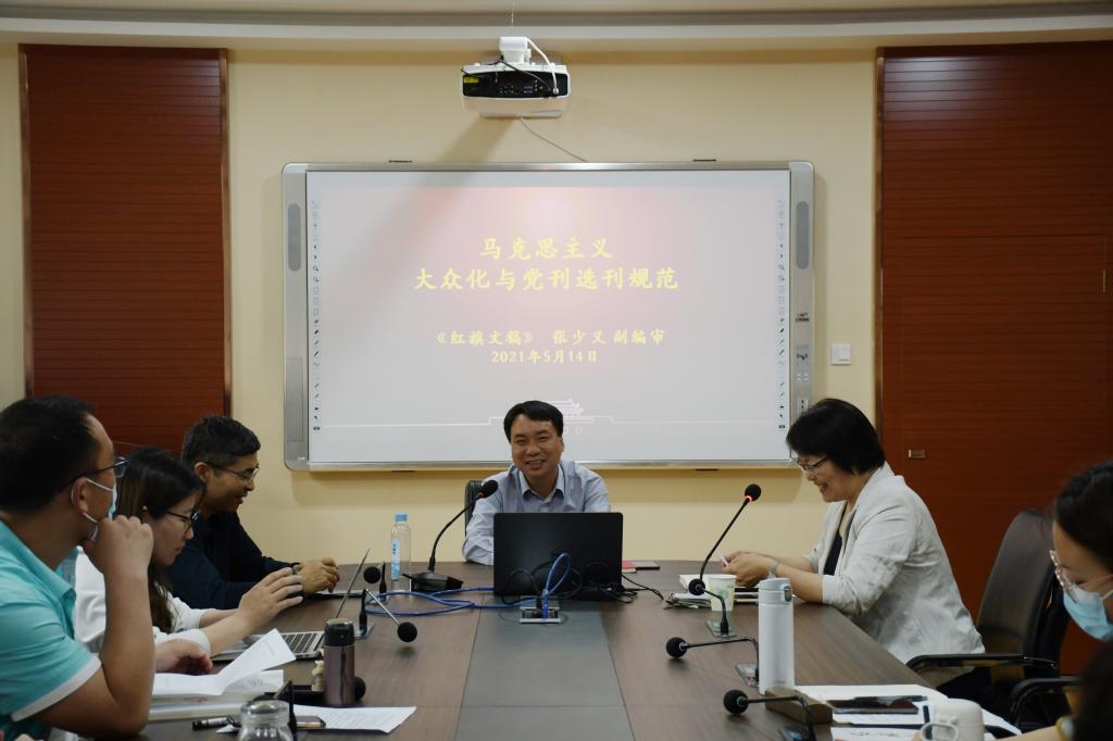 5月14日,马克思主义学院在二办203举办学术会议,《红旗文稿》杂志社副编审张少义应邀作题为“马克思主义大众化与党刊选刊规范”的讲座。讲座由副院长李英主持,学院50余名师生参加。