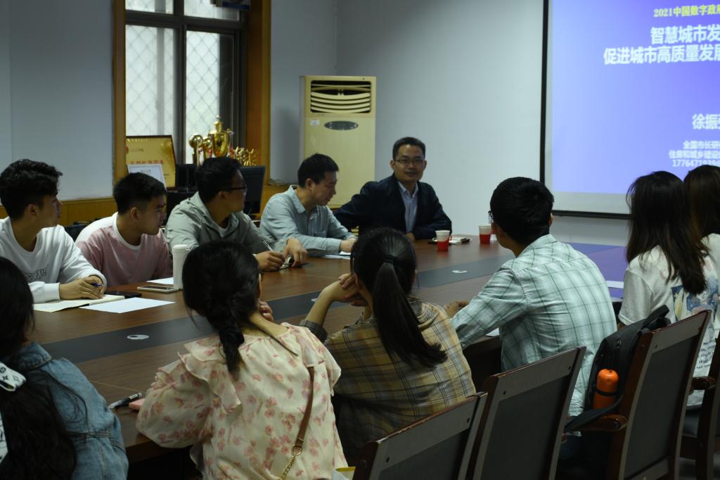 5月15日上午,公共管理学院邀请全国市长研修学院、住房和城乡建设部干部学院徐振强研究员来校作题为“智慧城市发展体系与促进城市高质量发展的抓手:新城建”的学术讲座。讲座由公共管理学院院长赵建强主持,学院研究生共40余人聆听。