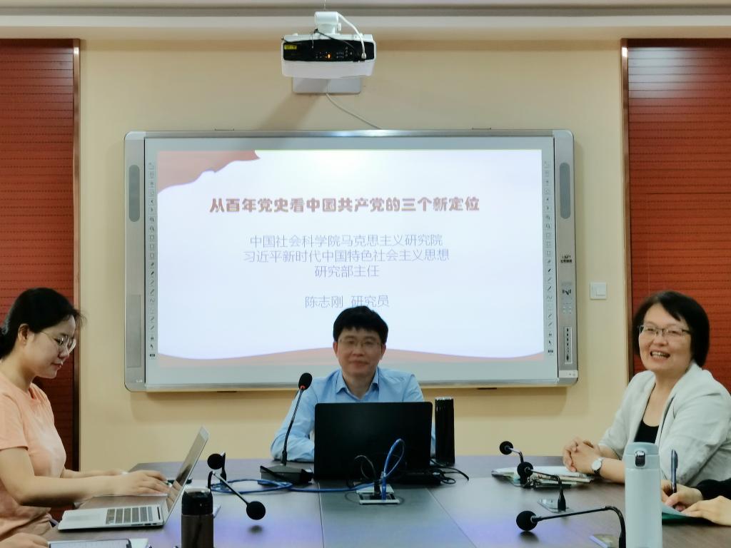 5月15日下午,马克思主义学院举办学术会议,邀请中国社会科学院陈志刚研究员,为学院师生作题为“从百年党史看中国共产党的三个定位”的学术讲座。讲座由副院长李英主持,全院50余名师生参加。