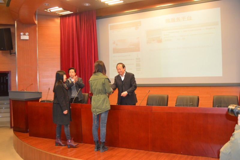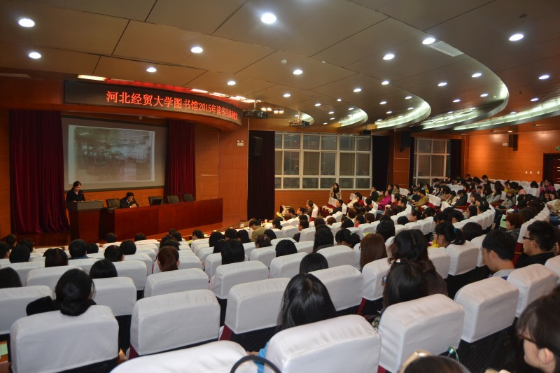 柴振国为荣获2014年“经贸最美读书人”称号的两位师生颁发证书,并讲话。他充分肯定了图书馆近年来在各方面所取得的成绩,希望广大师生多读书、读好书,丰富自己的内涵,文明自己的言行,提升自己的素质。最后,他宣布,以“快乐阅读 精彩人生”为主题的2015年“读书月”活动正式启动。
