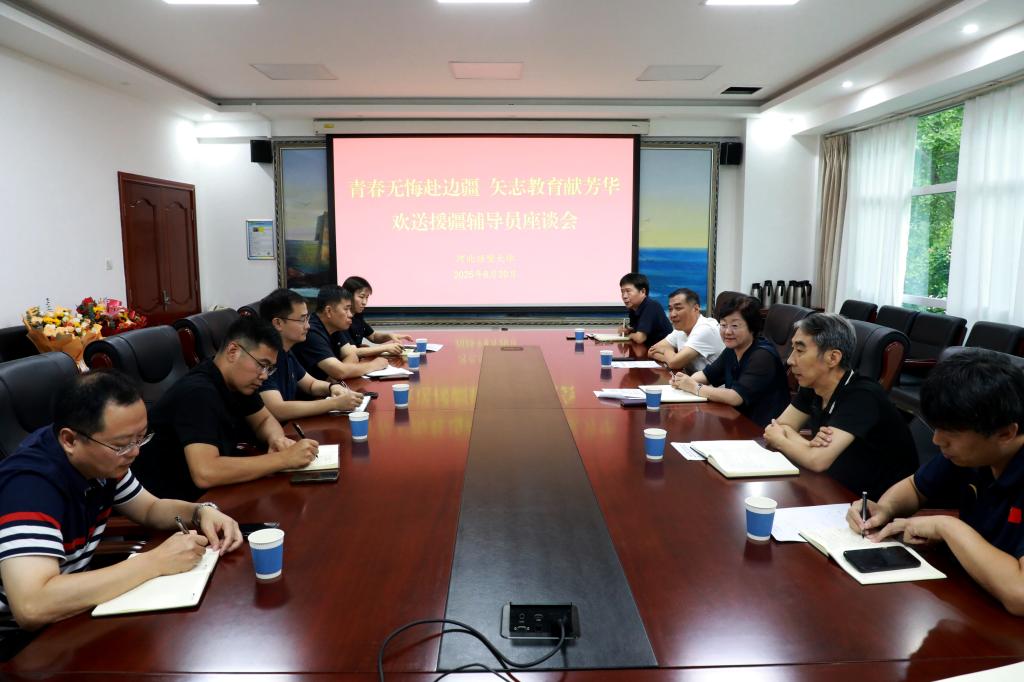 8月20日,KY开元在第四会议室召开“青春无悔赴边疆 矢志教育献芳华”欢送援疆辅导员座谈会。校党委书记李晓华、校长高波出席并讲话,校党委副书记张秀山主持会议。援疆辅导员申旭光、李艳辉及相关部门负责人,优秀援疆团干部代表参会。