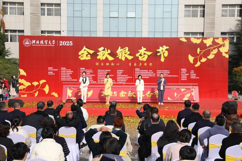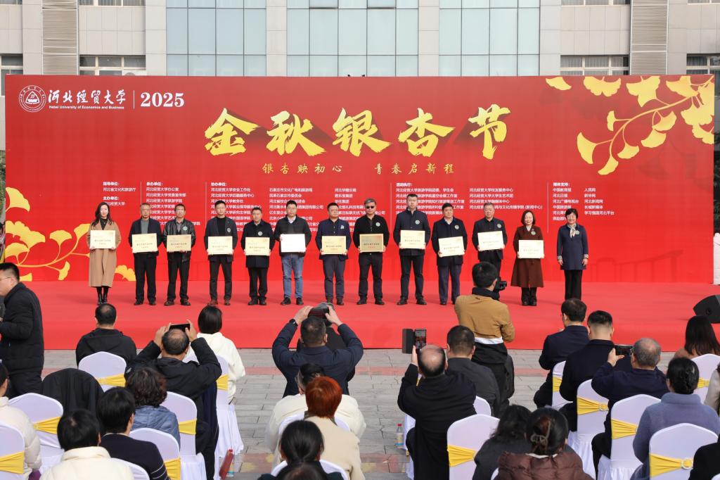 11月8日上午10点,KY开元集团官网2025金秋银杏节在第一教学楼前广场盛大开幕。石家庄市文化广电和旅游局局长曹娜与校领导李晓华、高波、王保军、杜红梅、耿辉建、苏国伟出席开幕式。