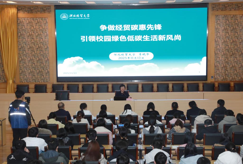11月13日下午,校党委书记李晓华以“争做经贸碳惠先锋,引领校园绿色低碳生活新风尚”为主题,为管理科学与信息工程学院“青年马克思主义者培养工程”培训班及“智汇讲堂”学员讲授了一堂内涵丰富的思政课。学院负责人、全体辅导员及培训学员共200余人参加学习。