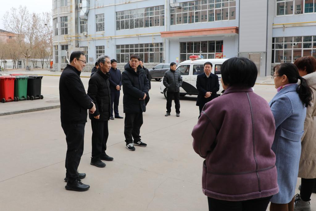 校领导一行先后来到学校总值班室、南门、网信中心、校医院、电工班、宿舍楼现场,看望慰问坚守岗位的一线职工,与大家亲切交谈,详细了解寒假期间校园安全保卫、消防管理、供暖运行、电力保障、网络信息服务、基础设施应急维护等各项工作的落实情况。