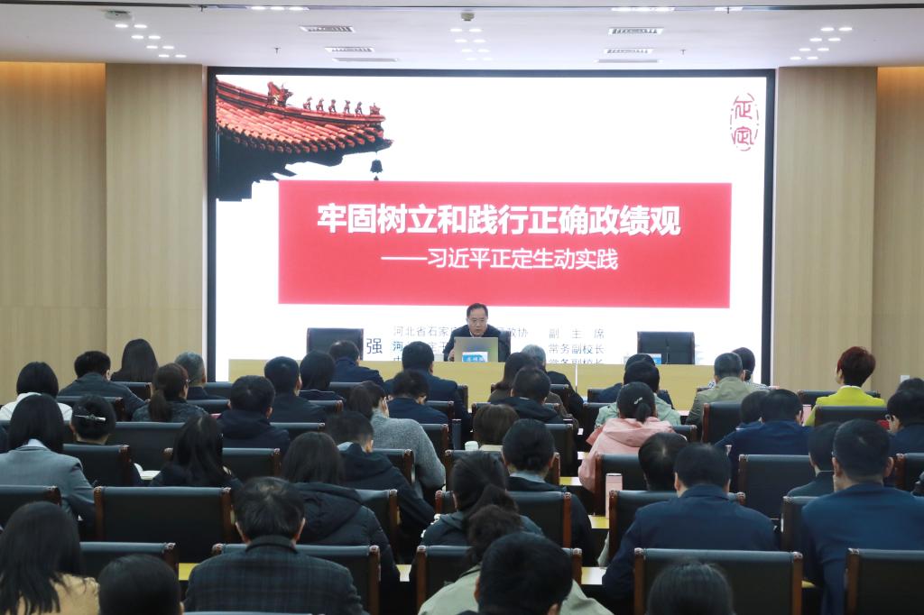 4月8日,校党委理论学习中心组召开扩大学习会,邀请正定县政协副主席、正定县委党校常务副校长齐顽强,作题为《牢固树立和践行正确政绩观——习近平正定生动实践》的辅导报告。校领导、全体处级干部参加学习。校党委副书记王保军主持会议。