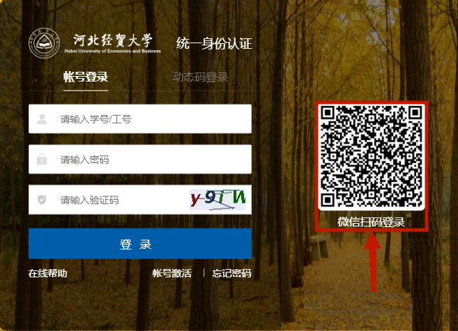 统一身份认证首页支持扫码登录。登录时使用手机微信“扫一扫”,扫描首页二维码后,手机上点“确认登录”即可。