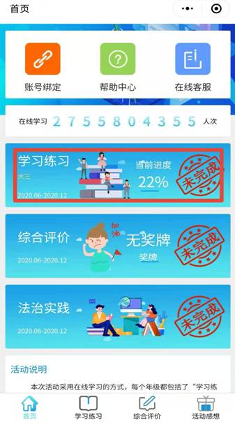 步骤2、选择“学习练习”会出现各专题的“课程学习”和“课后练习”,逐一完成。