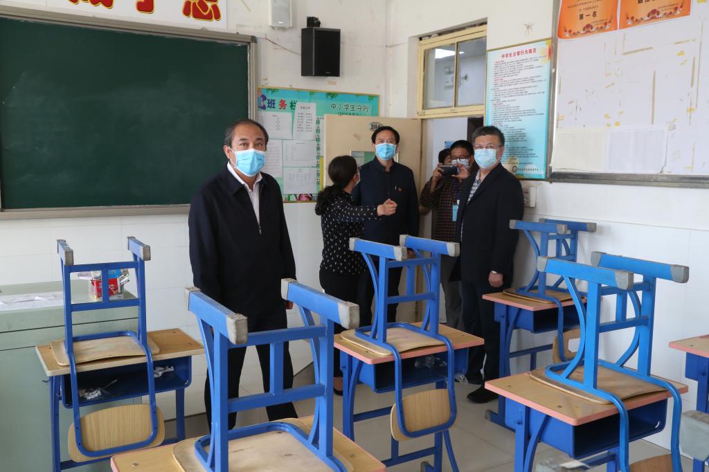 为做好2020年春季学期初三年级学生返校复课工作,增强KY开元附属中学应急防控能力,4月29日下午,校党委书记董兆伟,校党委副书记、校长刘兵带队到附属中学检查督导疫情防控及复学准备工作,校党委副书记刘建平,校党委常委、副校长杨金田,学校办公室负责人,附属中学班子成员陪同。