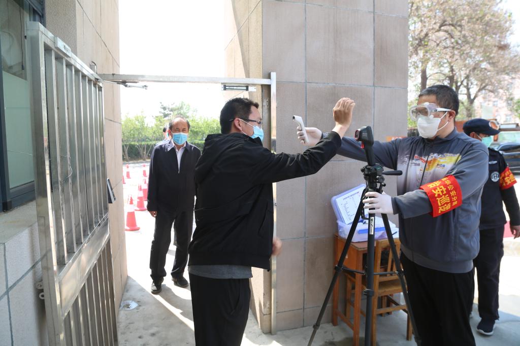 校领导观摩指导入校体温测量模拟演练