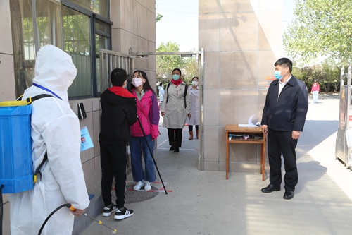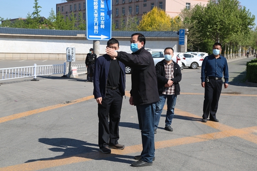 校党委常委、副校长杨金田检查指导附属中学疫情防控应急演练,校医院负责人参加。演练严格按照学校开学应急处置预案进行,分别模拟了师生入校消毒、体温检测、距离间隔、场所消杀、疑似人员应急隔离处置、课间活动、放学、疫情防控知识宣传教育等多个环节。杨金田进行现场点评并提出改进意见,他要求附属中学通过本次演练,对出现的实际问题进行梳理改进,同时结合实际情况进一步完善流程、细化措施,确保方案的可操作性、合理性、科学性,实现人员到位、物质到位、措施到位、落实到位,做好随时迎接学生开学的各项准备工作。
