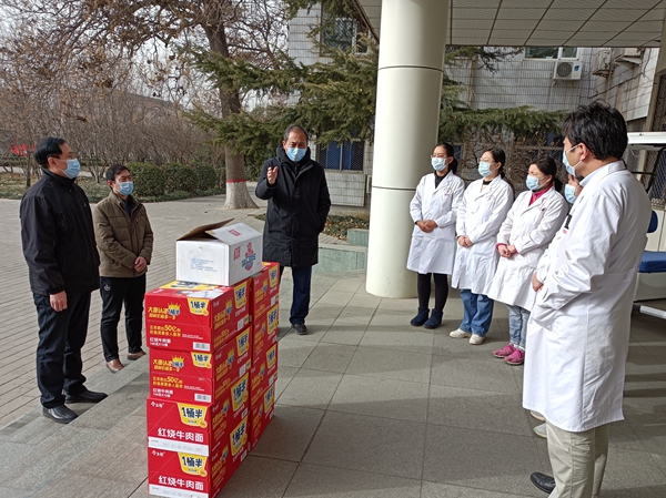 1月13日上午,校党委书记、学校疫情防控领导小组组长董兆伟带队看望慰问校医院、门卫执勤点等地投身疫情防控一线的员工,校党委副书记、学校疫情防控领导小组常务副组长刘建平,学校办公室、安全工作处、校园规划与建设处、校医院负责人陪同。
