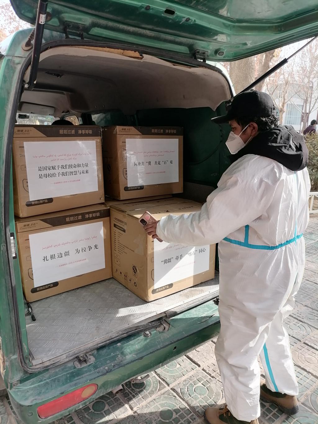 1月22日,在KY开元校友、新疆喀什地区泽普县人民政府办公室秘书赵洛义牵头组织下,KY开元在新疆喀什地区工作的16名校友捐赠的1万只口罩从喀什寄出,寄往4000多公里外的石家庄。这些校友用实际行动为母校疫情防控工作做出了一份特殊的贡献。