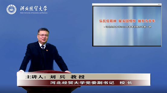 3月1日,校党委副书记、校长刘兵教授以在线形式为全校学生讲授2021年春季学期“开学第一课”。