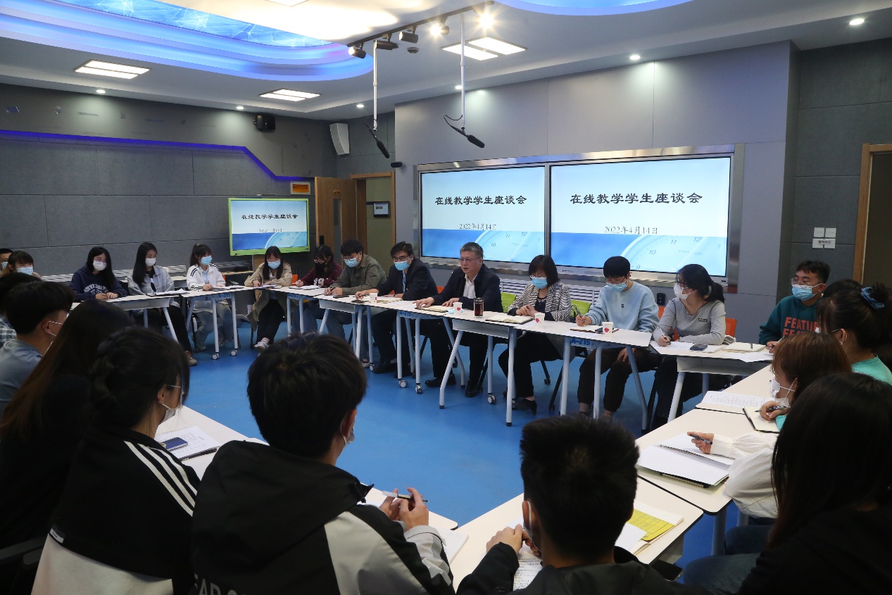 会上,同学们踊跃发言,畅谈在线教学期间的学习感受与体会,同时对在线教学期间任课教师的教学方法、课堂组织管理、教学资源平台建设等方面提出了意见建议。