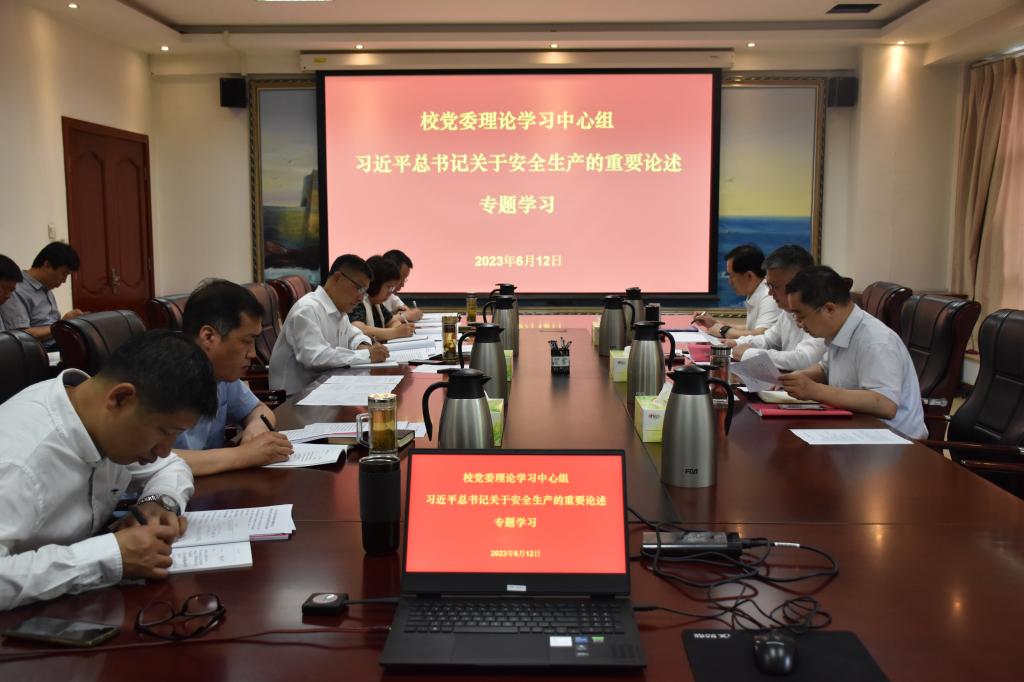 6月12日下午,校党委理论学习中心组在第四会议室集中学习习近平总书记关于安全生产的重要论述,观看专题片《生命重于泰山》。校党委书记刘兵主持学习并讲话,在校校领导参加学习。