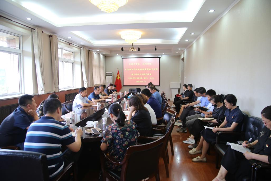 7月7日下午,校党委常委、副校长张秀山在经济管理学院行政楼五楼会议室以“学思用贯通知信行统一以实际工作成效检验主题教育成果”为题,为学院领导及各系部负责人讲授专题党课。