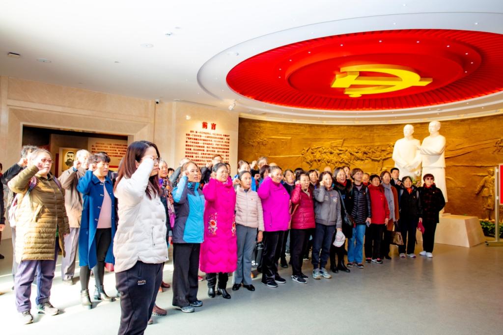 上午10时,在中共第一个农村支部纪念馆,大家整齐列队于鲜红的党旗下。离退休人员管理处党委书记、处长李军讲了开展这次活动的重要意义和事项安排;全体共产党员佩戴党员徽章,在党旗面前集体宣誓,重温入党誓词;纪念馆展览区域分为五个展区,分别为“火种觉醒”“成长斗争”“砥柱抗战”“燎原解放”“执政发展”,通过讲解员讲解和影像资料,大家直观感受到安平县为民族解放作出的贡献之大和付出的牺牲之多。