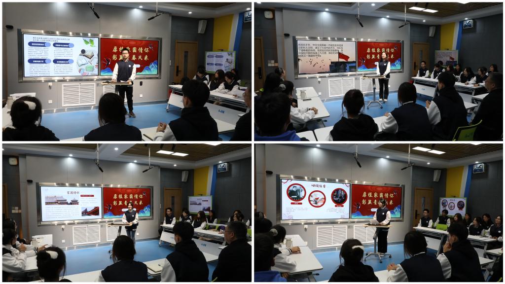 本次班会以“厚植家国情怀,彰显青春风采”为主题,班级学生负责人介绍了班级文化、班规班训等制度建设情况,8位学生代表围绕当代大学生对于家国情怀的理解,以及如何在时代浪潮中实现自我价值作主题演讲,用详实的数据和案例展现了革命先辈、英雄人物、青年榜样的感人事迹,是对家国情怀的再理解和再学习,也是对涵养家国情怀的再深化和再行动。