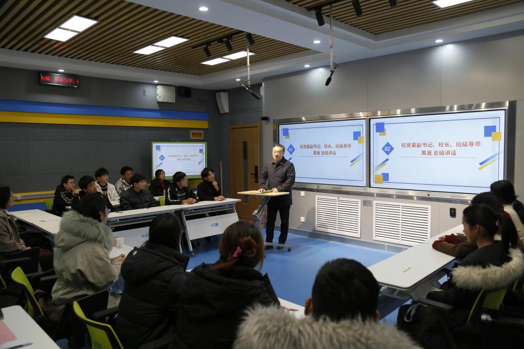 黄晟对同学们能够很快适应大学生活、对未来有目标想法表示欣慰和鼓励,对班级团结友爱、积极向上的浓厚氛围表示充分认可。他指出,同学们要树立正确的理想信念,要有敢闯敢拼的勇气和迎难而上的韧劲,为自己未来发展打下坚实基础。他与同学们分享了自己的求学经历和人生经验,并提出了三点希望和要求。一要专注做事,提高核心竞争力,专注于学术和专业学习,努力提高自身在未来社会人才竞争中的核心竞争力。二要勇于探索,增强自我意识,大胆尝试,勇于突破惯性思维束缚,不断反思实践,正确认识自我,明确目标方向。三要珍惜当下的学习和生活环境,珍惜同窗情谊,不断提升班级凝聚力,推动班级建设取得优异成绩。