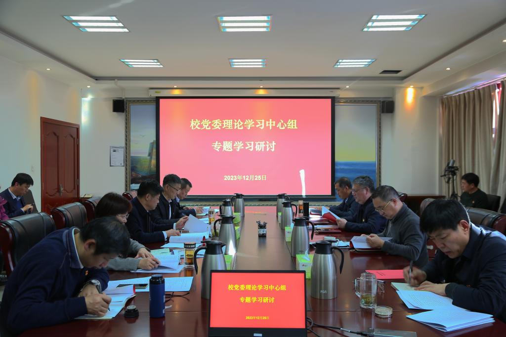 12月25日下午,校党委理论学习中心组在第四会议室开展集中学习研讨,认真学习领会习近平总书记在中央经济工作会议上的重要讲话,传达学习河北省委经济工作会议精神。校党委书记刘兵主持学习并讲话,校党委常委、副校长杨金田、田学斌作学习交流发言,全体校领导参加学习。